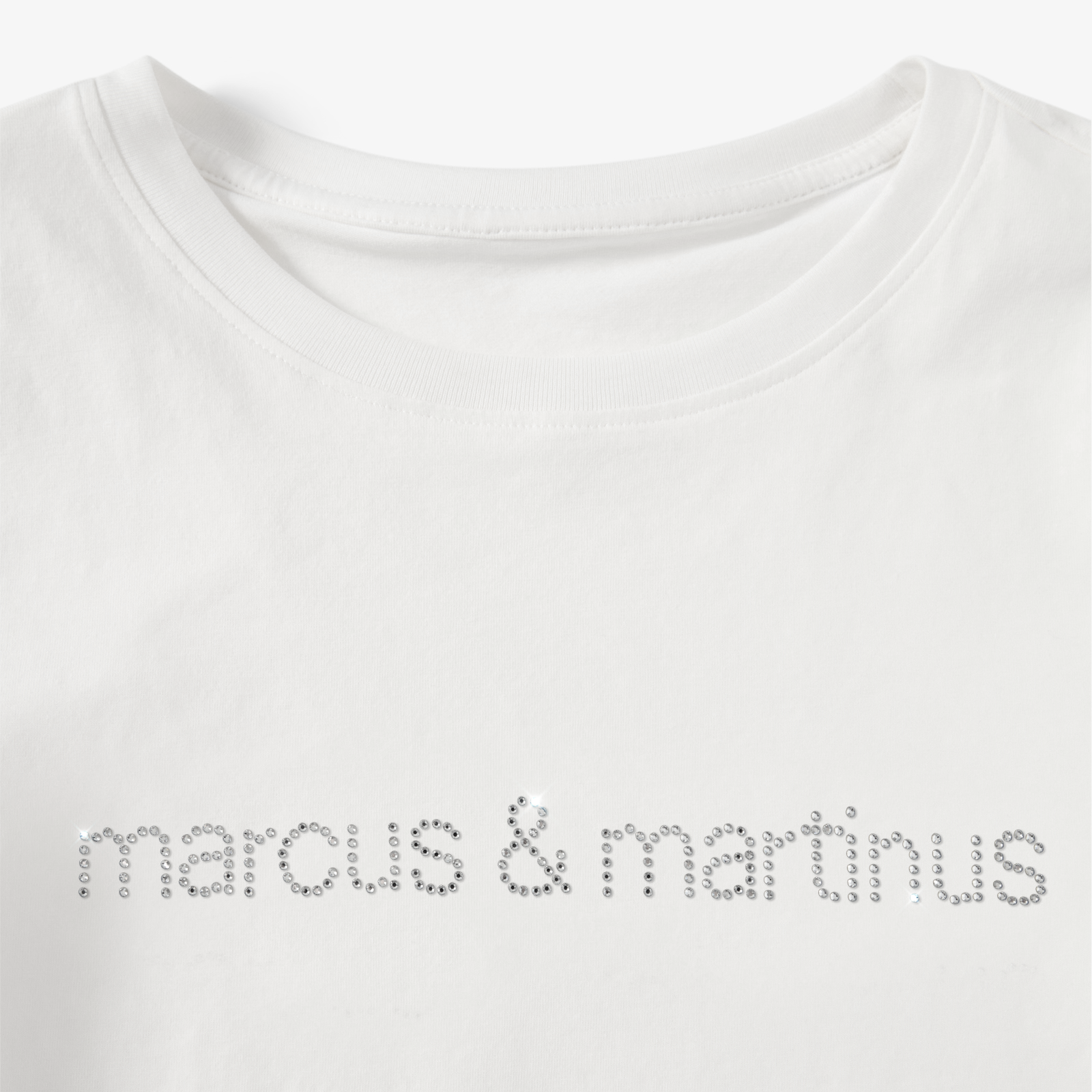 An exclusive limited-edition cropped tee featuring a sparkling rhinestone Marcus & Martinus logo across the chest. Made from a soft blend of 90% organic cotton and 10% recycled elastane, it has a tight, body-hugging fit that gives a sleek and modern silhouette.Available only in very limited quantities, making it a rare and highly collectible piece for dedicated fans.Fabric & Details:– 90% Organic Cotton / 10% Recycled Elastane– Tight, body-hugging fit– Rhinestone front logo– Soft stretch fabric– Limited drop — produced in a small exclusive runA standout premium piece designed to shine on stage nights or elevate any everyday look.